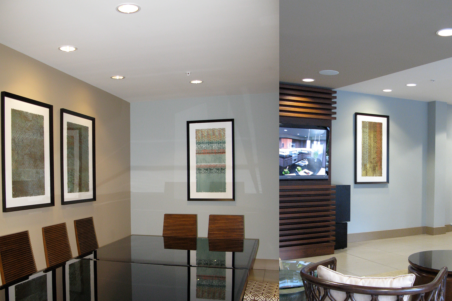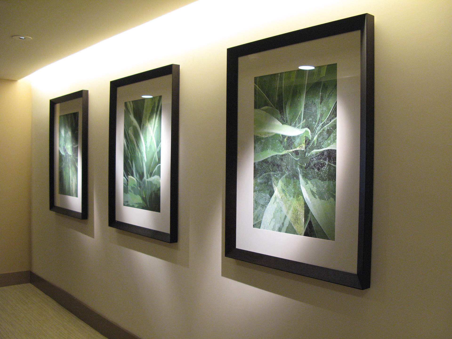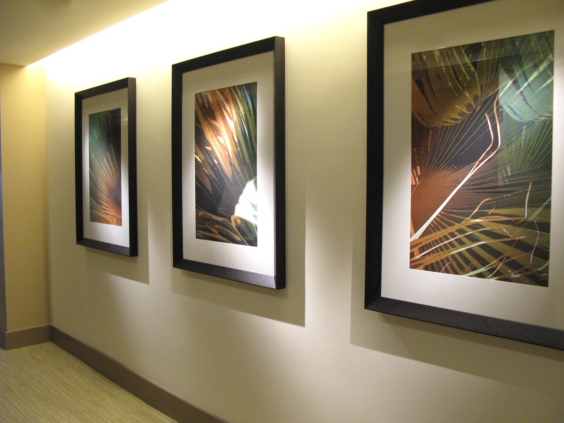 Custom design and production of framed triptych artwork for elevator lobby and community room.