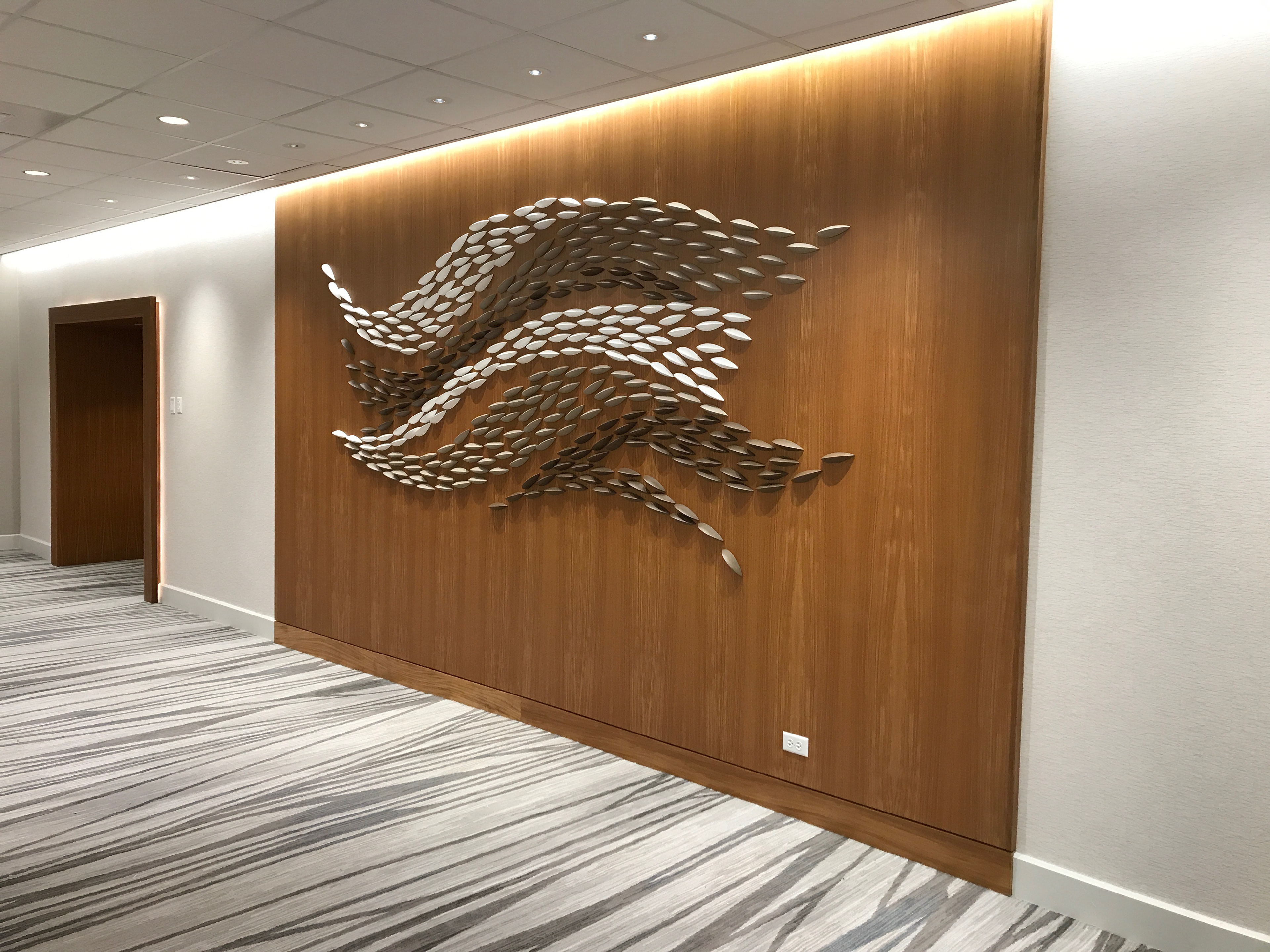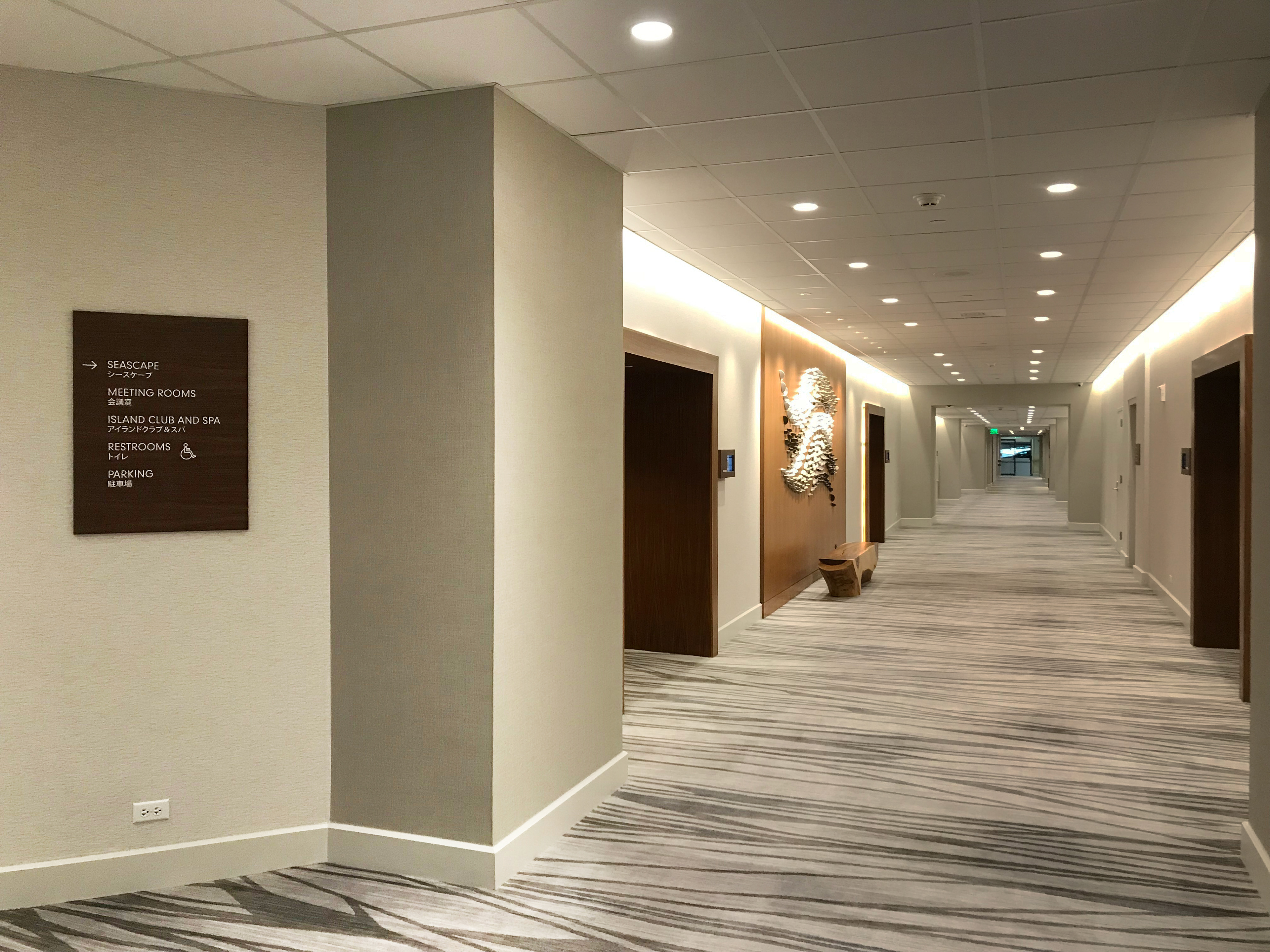 Public areas and amenities; custom design, production and installation of signage and wayfinding system that included exterior signage, lobby directories, lobby lounge and pool terrace identity signs, Morimoto and Momosan Restaurants, parking garage, meeting rooms as well as custom two dimensional artwork and wall sculpture installations. Hospitality | Architecture & Interior Design: Pacific Asia Design Group